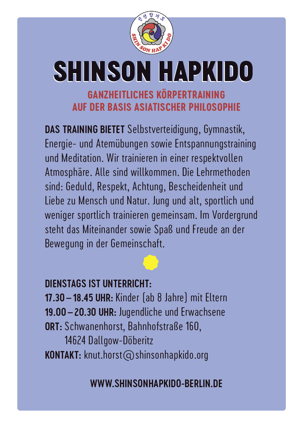 Anfrage per Mail an info(at)shinsonhapkido-berlin.de.